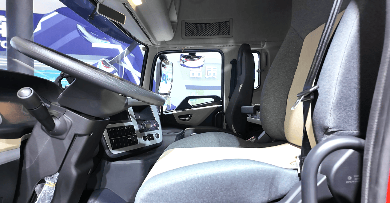 驾乘体验的升级也是这款车型的一大亮点。全新打造的驾驶室采用四点气囊悬浮设计,有效过滤了颠簸路面的震动;多功能液晶仪表、电动加热后视镜、LED钻石大灯等配置,不仅提升了操作的便捷性和行车安全,更赋予了纯电重卡前所未有的科技质感与驾乘体验。对于长期奔波在运输一线的司机而言,这样的舒适性改进不仅提升了工作效率,还使得驾驶室真正成为了一个移动的创富空间。